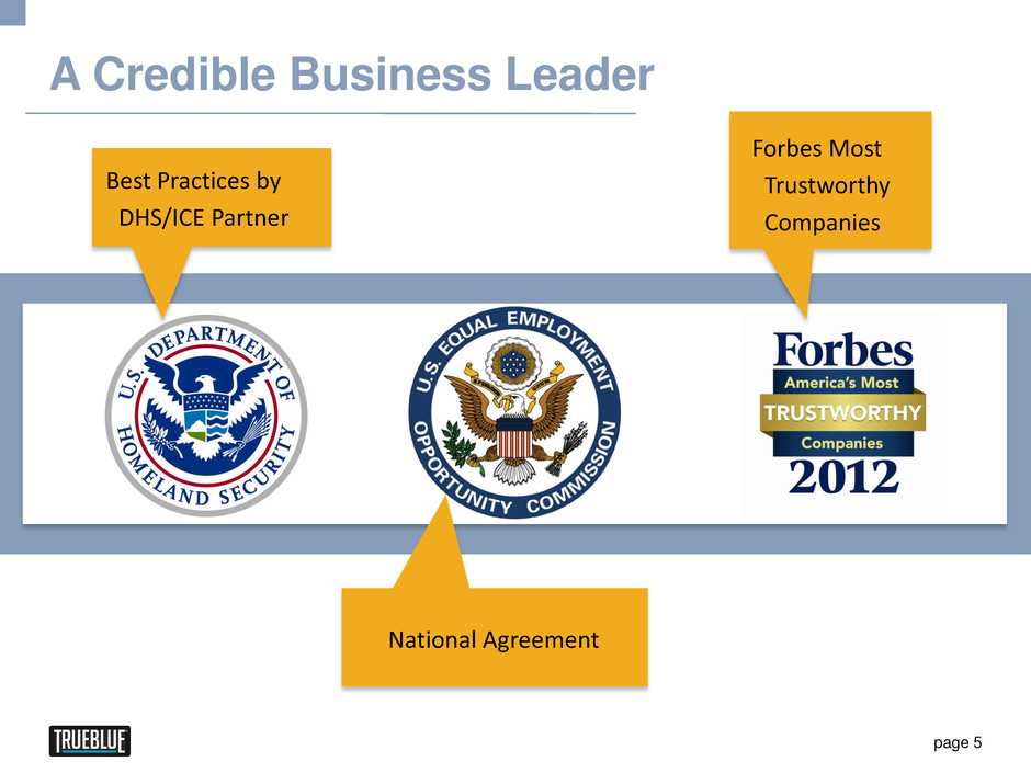 A Credible Business Leader Best Practices by DHS/ICE Partner National Agreement Forbes Most Trustworthy Companies page 5