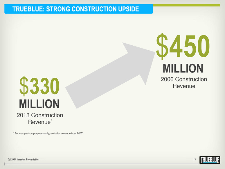 $450 MILLION $330 MILLION 2013 Construction Revenue* 2006 Construction Revenue * For comparison purposes only; excludes revenue from MDT.