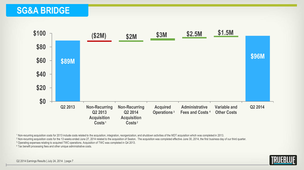 GROSS MARGIN BRIDGE 24.0% 24.5% 25.0% 25.5% 26.0% 26.5% 27.0% Q2 2013 Acquisition Mix Operational Management Q2 2014 26.4% (0.4%) 0.3% 26.5% Q2 2014 Earnings Results | July 24, 2014 | page 6