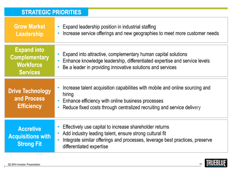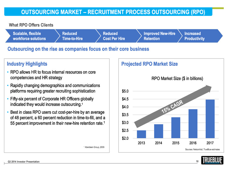 • • • • Sources: NelsonHall, TrueBlue estimates What RPO Offers Clients Q3 2014 Investor Presentation 10 1 Aberdeen Group, 2009