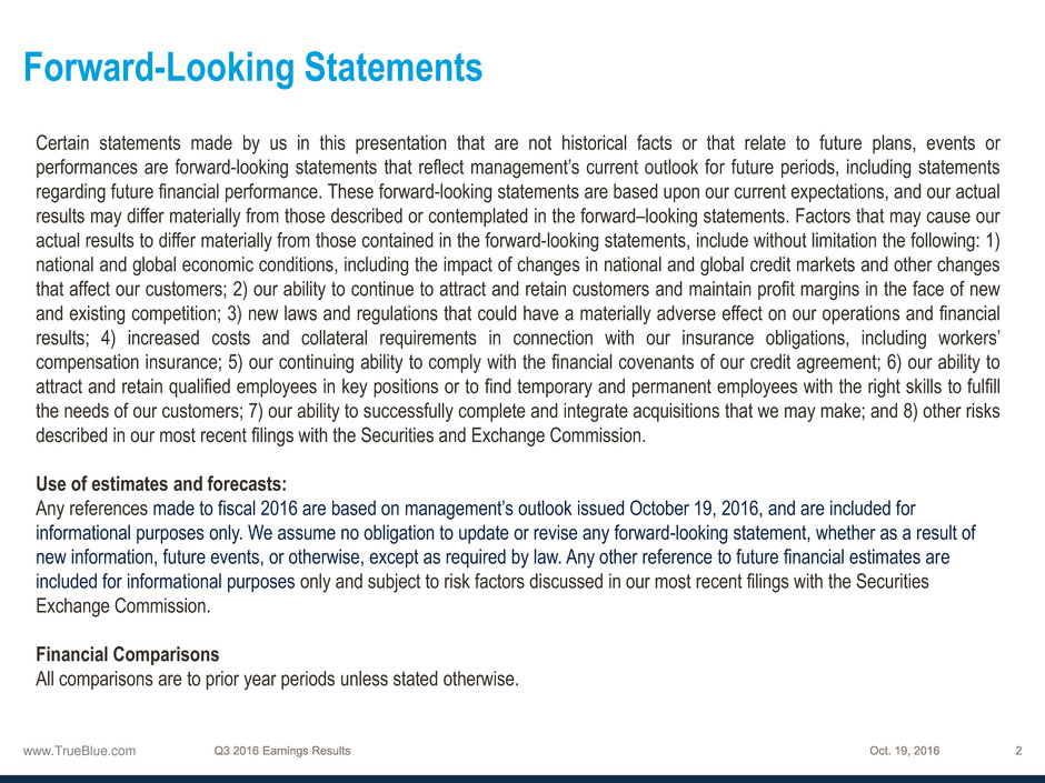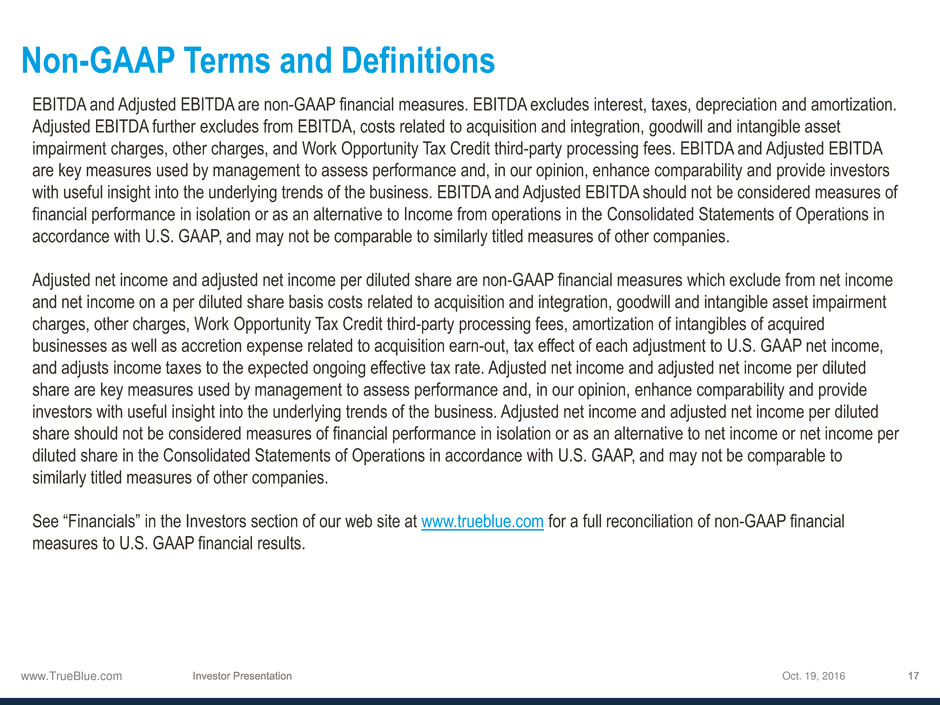 See “Financials” in the Investors section of our web site at www.trueblue.com for a full reconciliation of non-GAAP financial