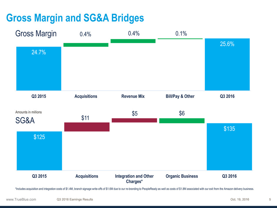 *Includes acquisition and integration costs of $1.4M, branch signage write-offs of $1.6M due to our re-branding to PeopleReady as well as costs of $1.8M associated with our exit from the Amazon delivery business.
