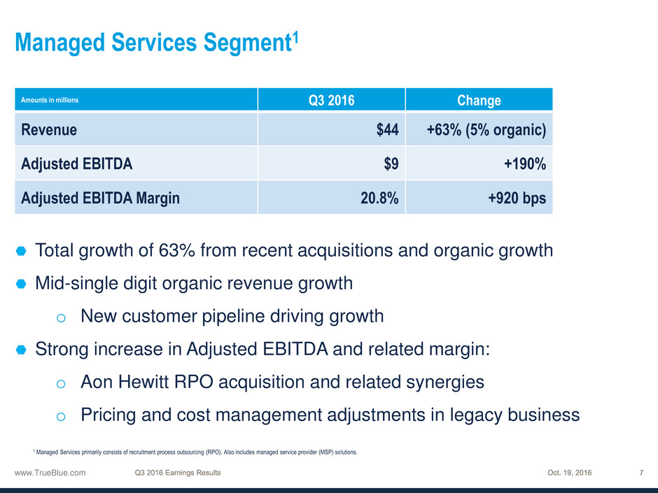 1 Managed Services primarily consists of recruitment process outsourcing (RPO). Also includes managed service provider (MSP) solutions.