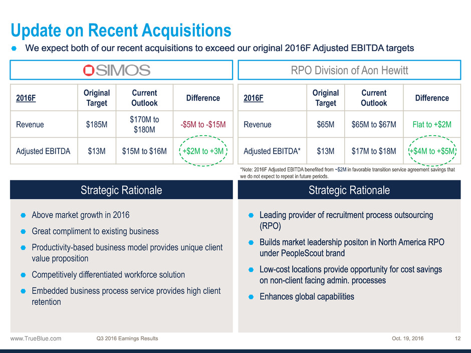 Recent acquisitions on track to exceed original Adjusted EBITDA