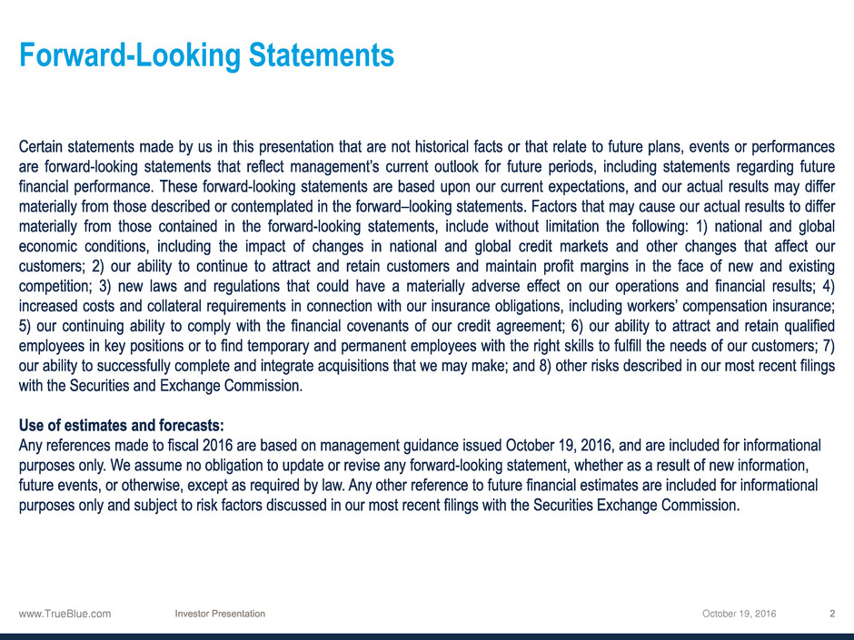 1 See “Financial Information” in the Investors section of our website at www.trueblue.com for a definition and full reconciliat ion of non-GAAP financial measures to GAAP financial results.