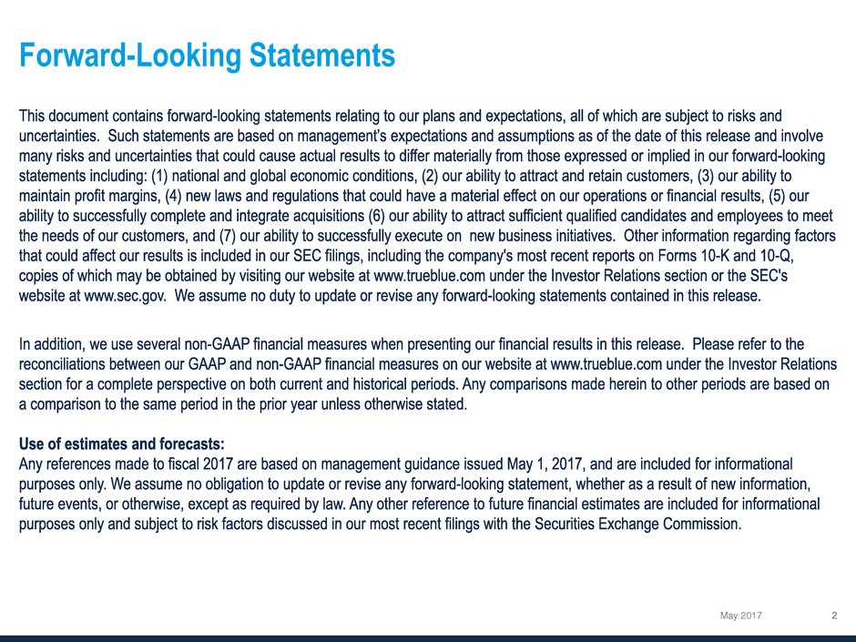 3 See “Financial Information” in the Investors section of our website at www.trueblue.com for a definition and full reconciliation of non-GAAP financial measures to GAAP financial results.