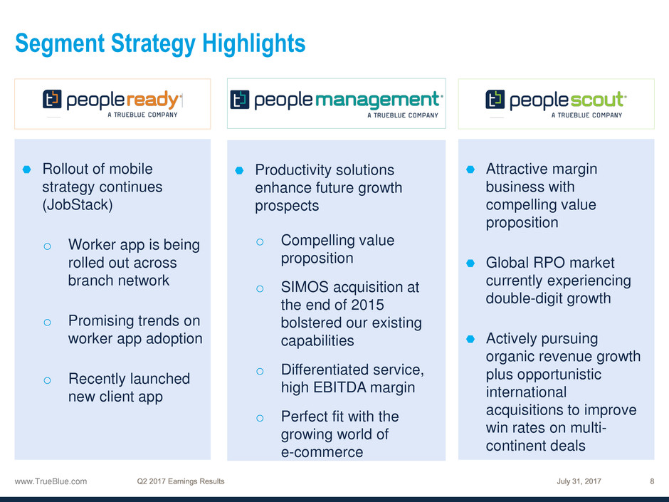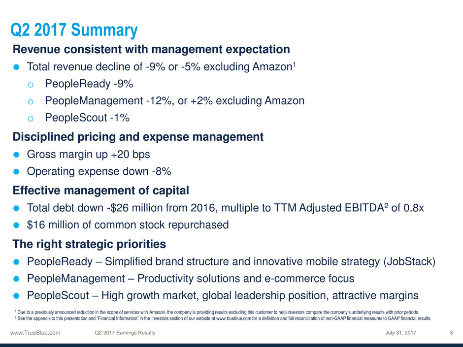 2 See the appendix to this presentation and “Financial Information” in the Investors section of our website at www.trueblue.com for a definition and full reconciliation of non-GAAP financial measures to GAAP financial results.