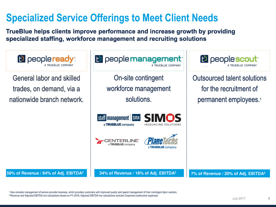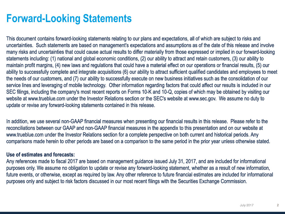 3 See the appendix to this presentation and “Financial Information” in the Investors section of our website at www.trueblue.com for a definition and full reconciliation of non-GAAP financial measures to GAAP financial results.