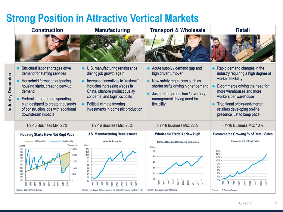 1 No single customer accounts for more than 2% of total revenue on a TTM 1/1/17 basis, pro forma for reductions in use of contingent labor by Amazon announced in 2016.