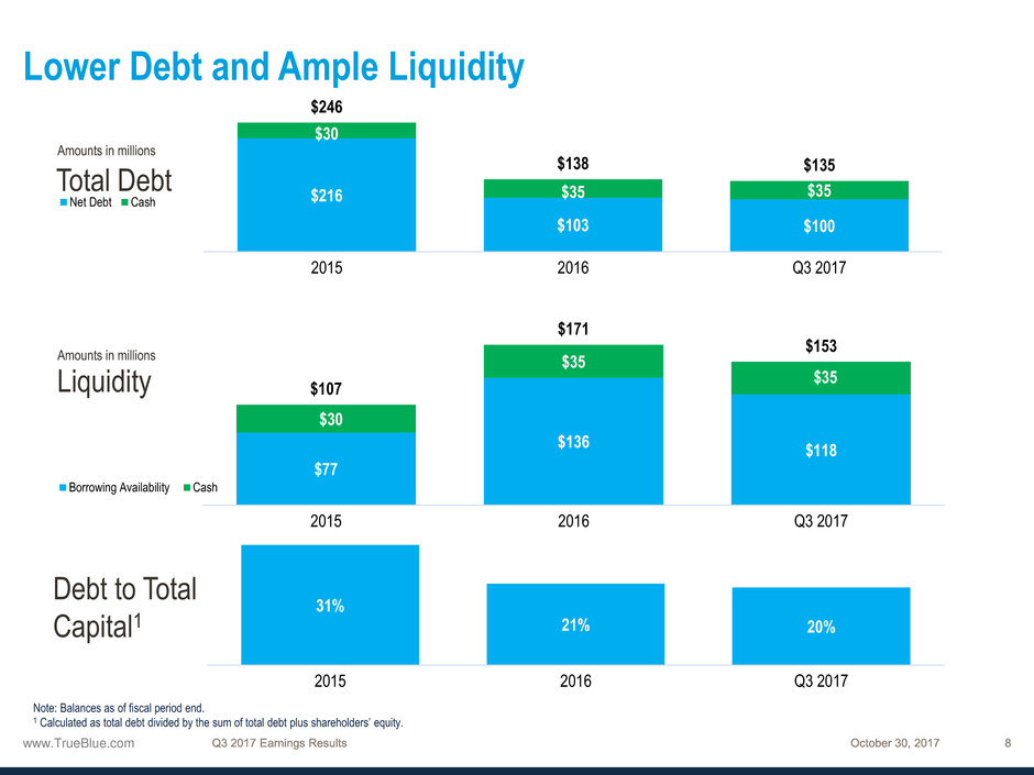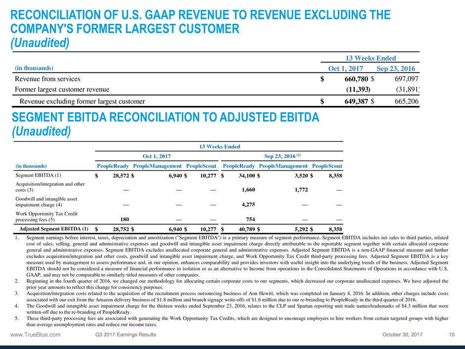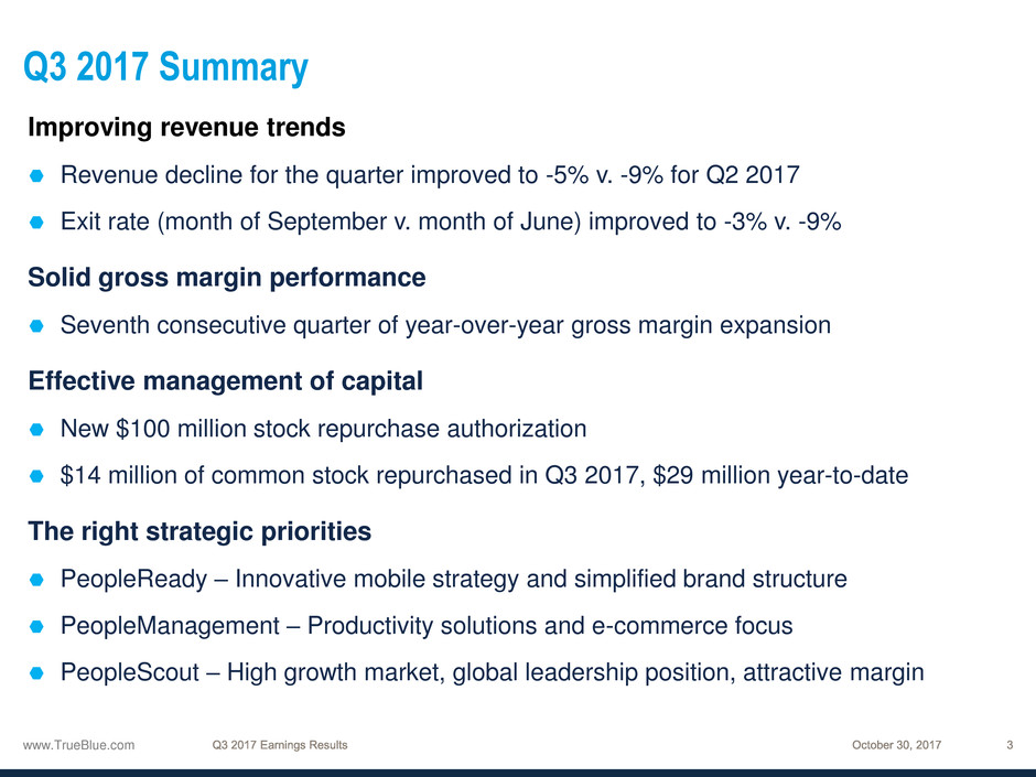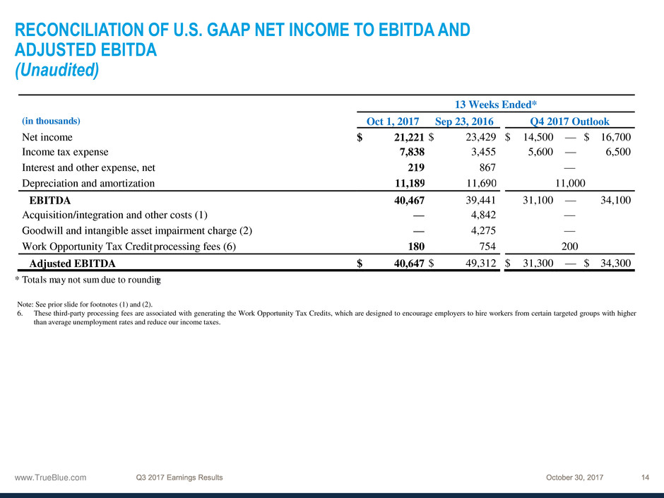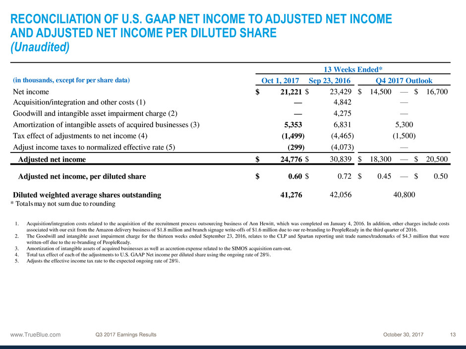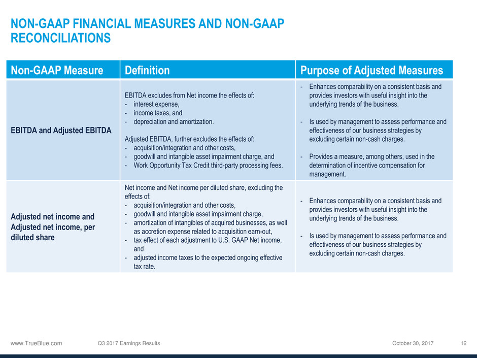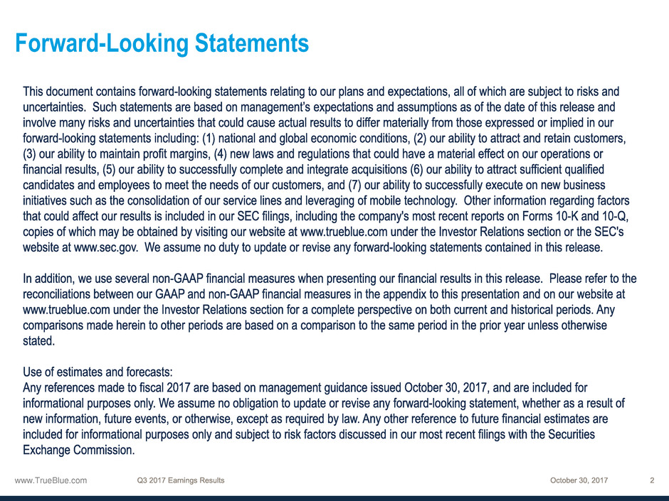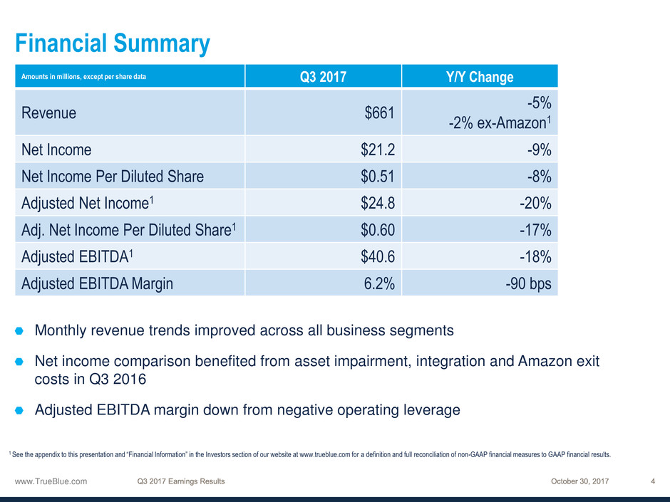 1 See the appendix to this presentation and “Financial Information” in the Investors section of our website at www.trueblue.com for a definition and full reconciliation of non-GAAP financial measures to GAAP financial results.