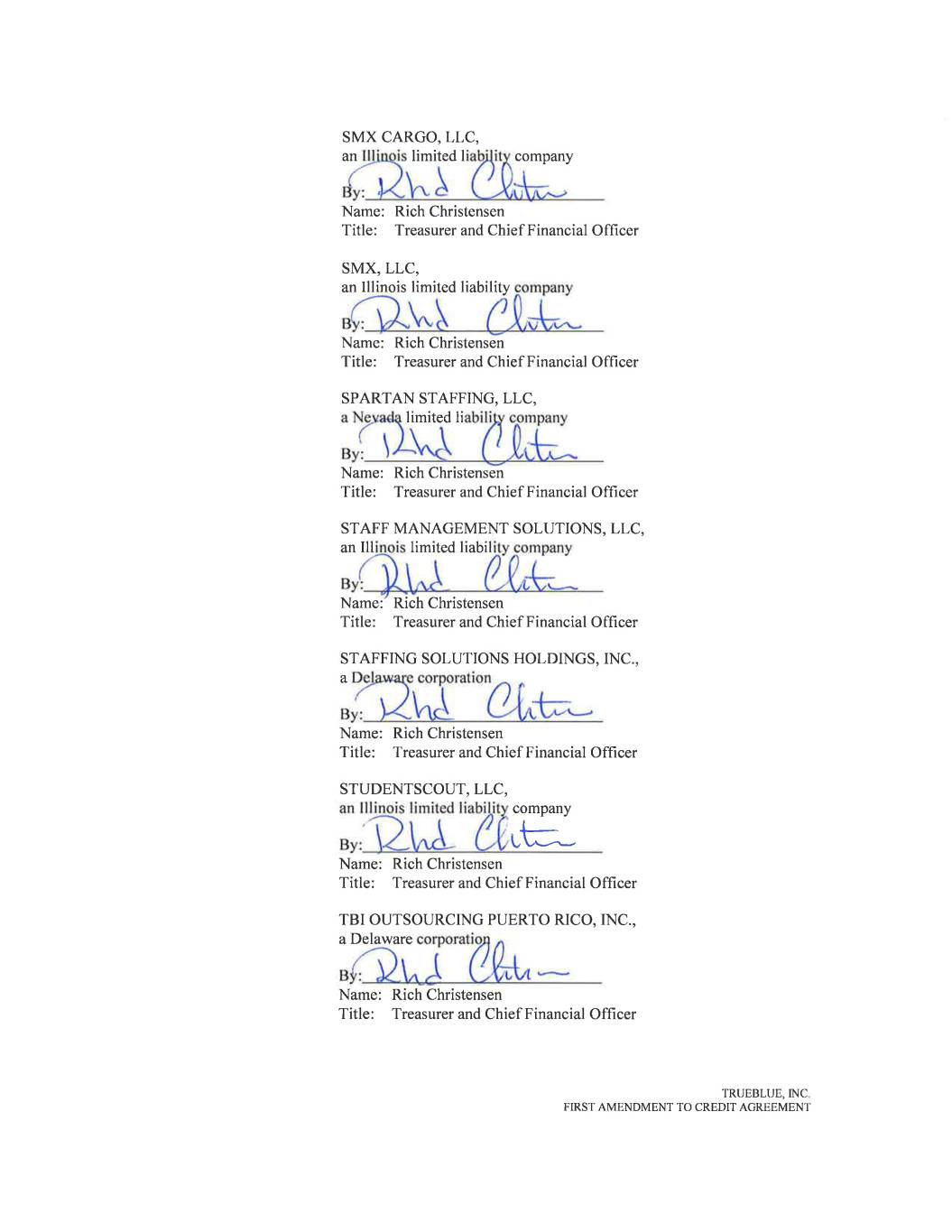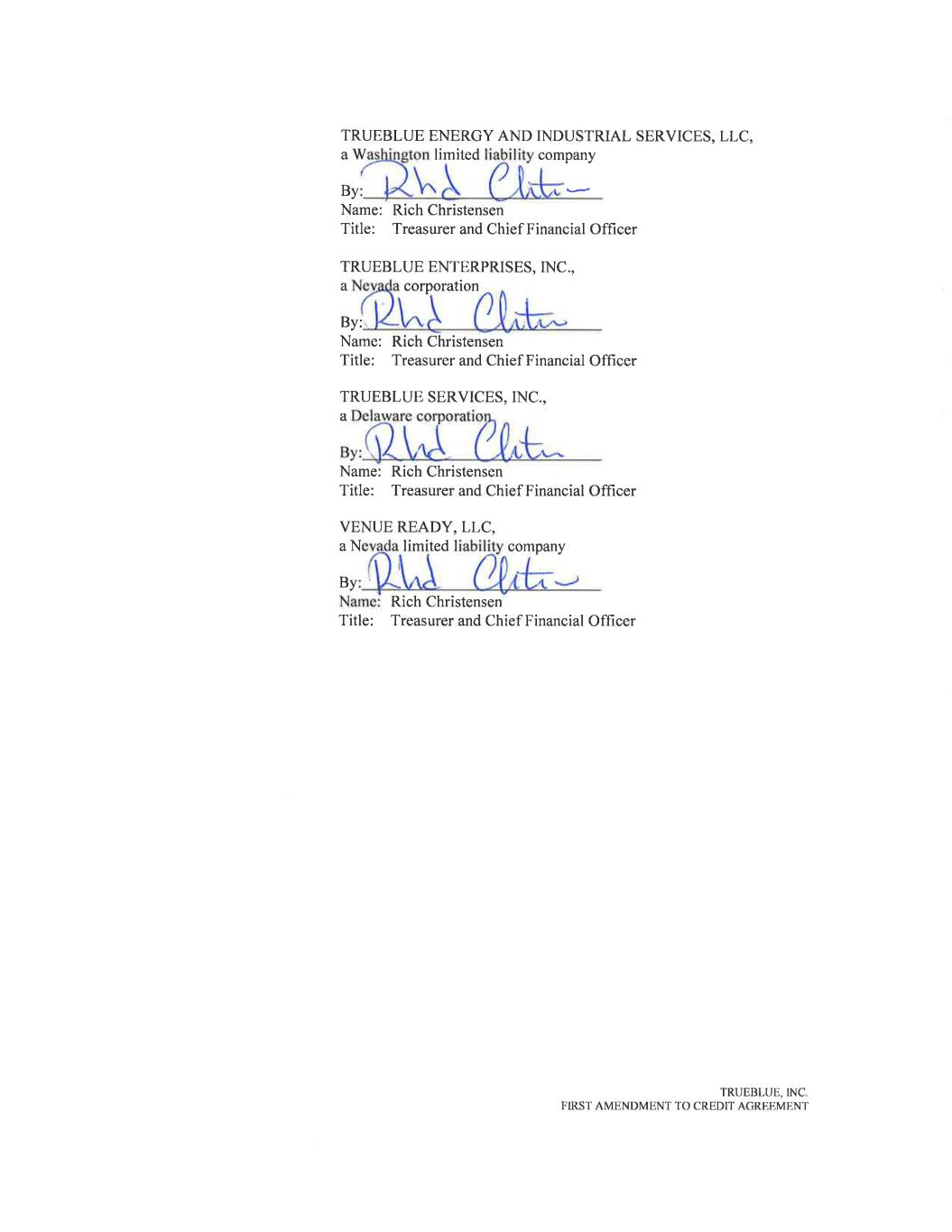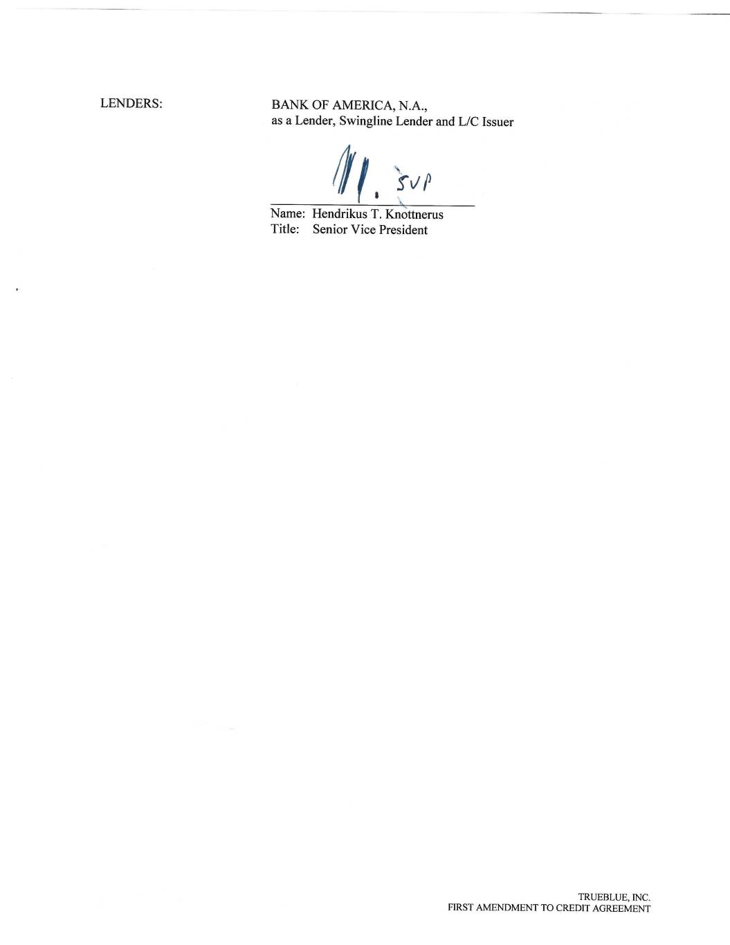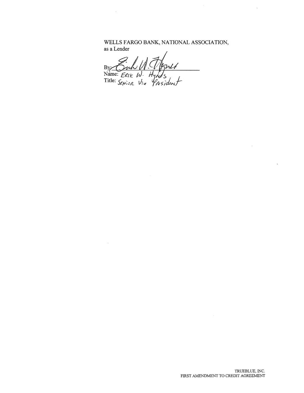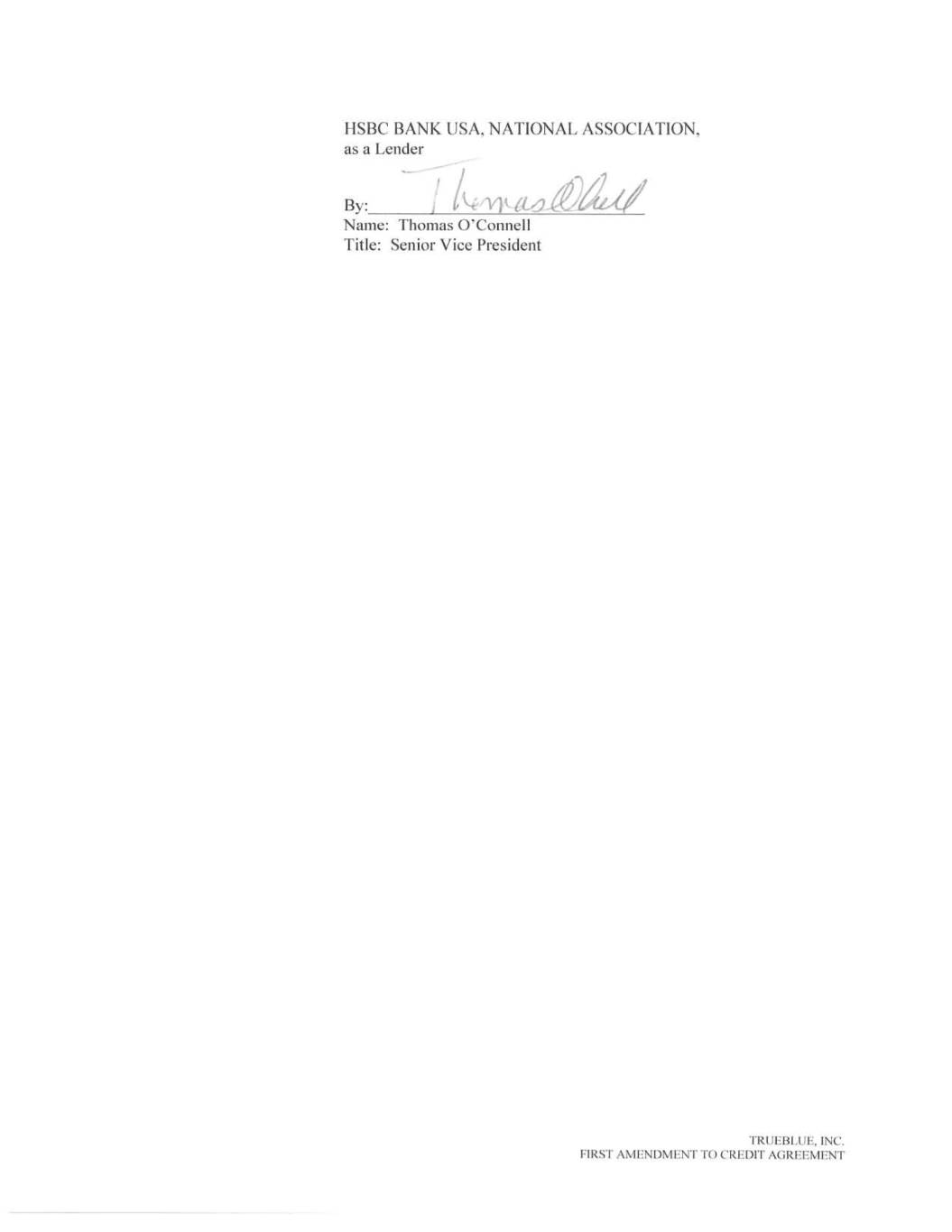 KEYBANK NATIONAL ASSOCIATION, as a Lender By:________________________________ Name: Joseph M Murry Title: Senior Vice President TRUEBLUE, INC. FIRST AMENDMENT TO CREDIT AGREEMENT