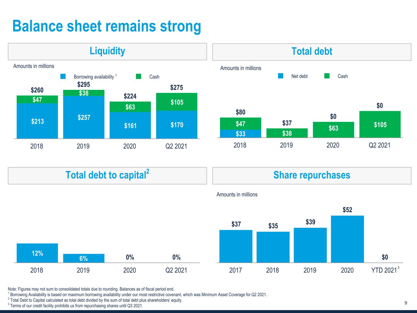 www.TrueBlue.c om 9 12% 6% 0% 0% 2018 2019 2020 Q2 2021 $80 $37 $0 $0 $33 $47 $38 $63 $105 Net debt Cash 2018 2019 2020 Q2 2021 $260 $295 $224 $275 $213 $257 $161 $170 $47 $38 $63 $105 Borrowing availability Cash 2018 2019 2020 Q2 2021 Balance sheet remains strong Amounts in millions Note: Figures may not sum to consolidated totals due to rounding. Balances as of fiscal period end. 1 Borrowing Availability is based on maximum borrowing availability under our most restrictive covenant, which was Minimum Asset Coverage for Q2 2021. 2 Total Debt to Capital calculated as total debt divided by the sum of total debt plus shareholders’ equity. 3 Terms of our credit facility prohibits us from repurchasing shares until Q3 2021. Liquidity Amounts in millions Share repurchasesTotal debt to capital2 Total debt 1 $37 $35 $39 $52 $0 2017 2018 2019 2020 YTD 2021 Amounts in millions 3