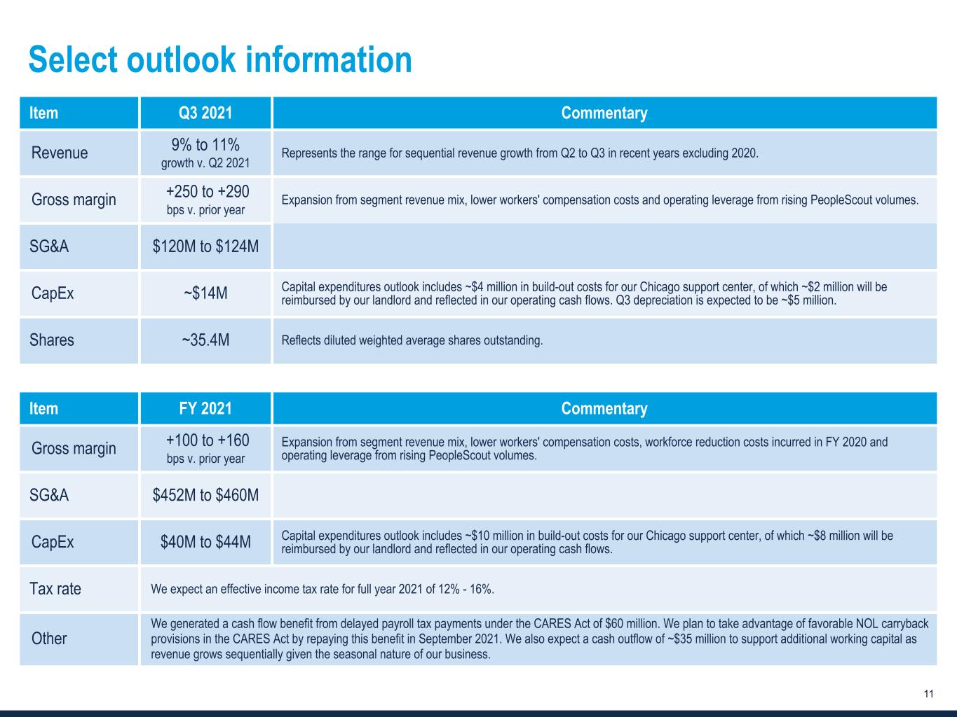 www.TrueBlue.c om 15 Footnotes: (1) Amortization of software as a service assets is reported in selling, general and administrative expense. (2) Workforce reduction costs for the 13 weeks ended June 28, 2020 were primarily due to employee reductions as part of our cost management actions in response to COVID-19 ($3.0 million in cost of services and $8.0 million in selling, general and administrative expense). (3) Other adjustments for the 13 weeks ended June 27, 2021 primarily include redundant lease expense of $0.8 million incurred while transitioning into our new Chicago office. Other adjustments also include implementation costs for cloud-based systems of $0.1 million for all periods presented. (4) Total tax effect of each of the adjustments to U.S. GAAP net income (loss) using the expected income tax rate of 14 percent for 2021 and the effective income tax rate of 62 percent for Q2 2020. (5) These third-party processing fees are associated with generating the Work Opportunity Tax Credits, which are designed to encourage employers to hire workers from certain targeted groups with higher than average unemployment rates.