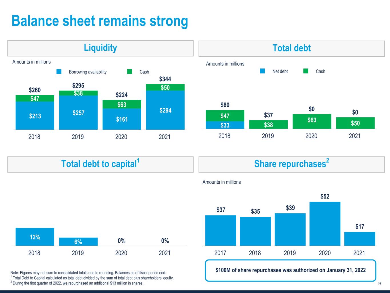 www.TrueBlue.c om 9 12% 6% 0% 0% 2018 2019 2020 2021 $80 $37 $0 $0 $33 $47 $38 $63 $50 Net debt Cash 2018 2019 2020 2021 $260 $295 $224 $344 $213 $257 $161 $294 $47 $38 $63 $50 Borrowing availability Cash 2018 2019 2020 2021 Balance sheet remains strong Amounts in millions Note: Figures may not sum to consolidated totals due to rounding. Balances as of fiscal period end. 1 Total Debt to Capital calculated as total debt divided by the sum of total debt plus shareholders’ equity. 2 During the first quarter of 2022, we repurchased an additional $13 million in shares.. Liquidity Amounts in millions Share repurchases2Total debt to capital1 Total debt $37 $35 $39 $52 $17 2017 2018 2019 2020 2021 Amounts in millions $100M of share repurchases was authorized on January 31, 2022
