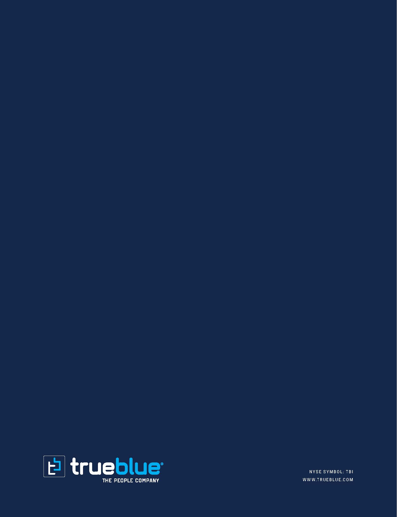 A copy of the Company’s 2017 Annual Report on Form 10-K, as filed with the SEC, will be furnished without charge to shareholders upon request to the chief financial officer at TrueBlue, Inc., 1015 A Street, Tacoma, Washington 98402 or by telephone at (253) 383-9101. TRUEBLUE, INC. By Order of the Board of Directors, James E. Defebaugh Secretary /s/ James E. Defebaugh Tacoma, Washington March 29, 2018 |